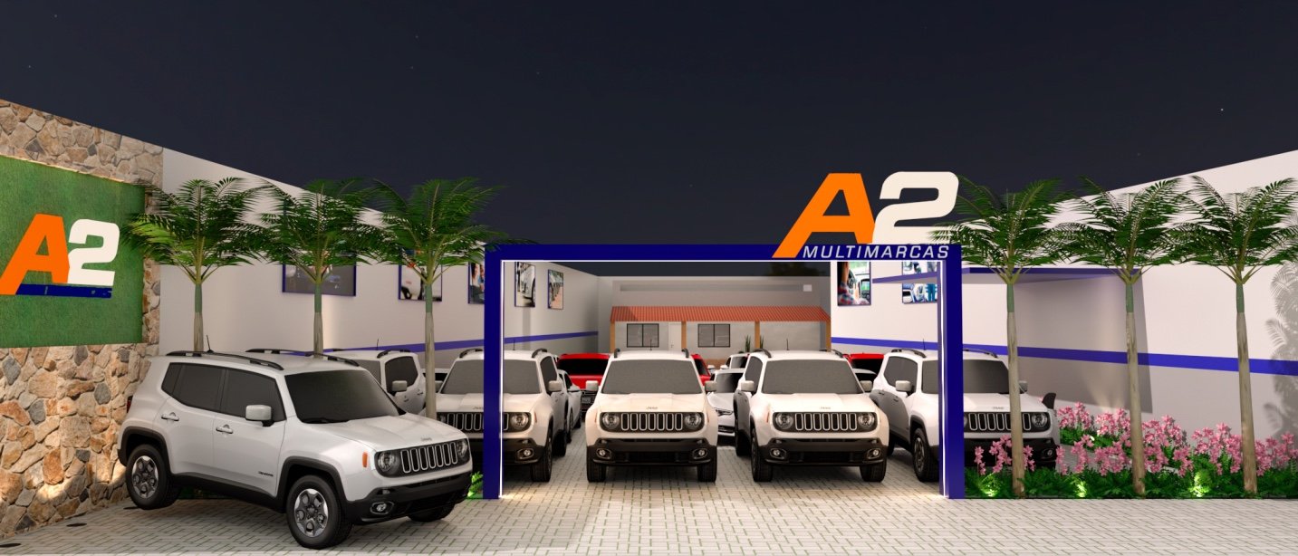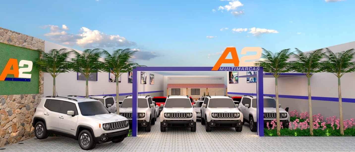 Uma loja de veículos que visa agregar a maior quantidade possível de automóveis, sem perder a estética. Por isso, criamos um pórtico de entrada, que seja convidativo ao cliente, e uma parede para um “carro destaque”.